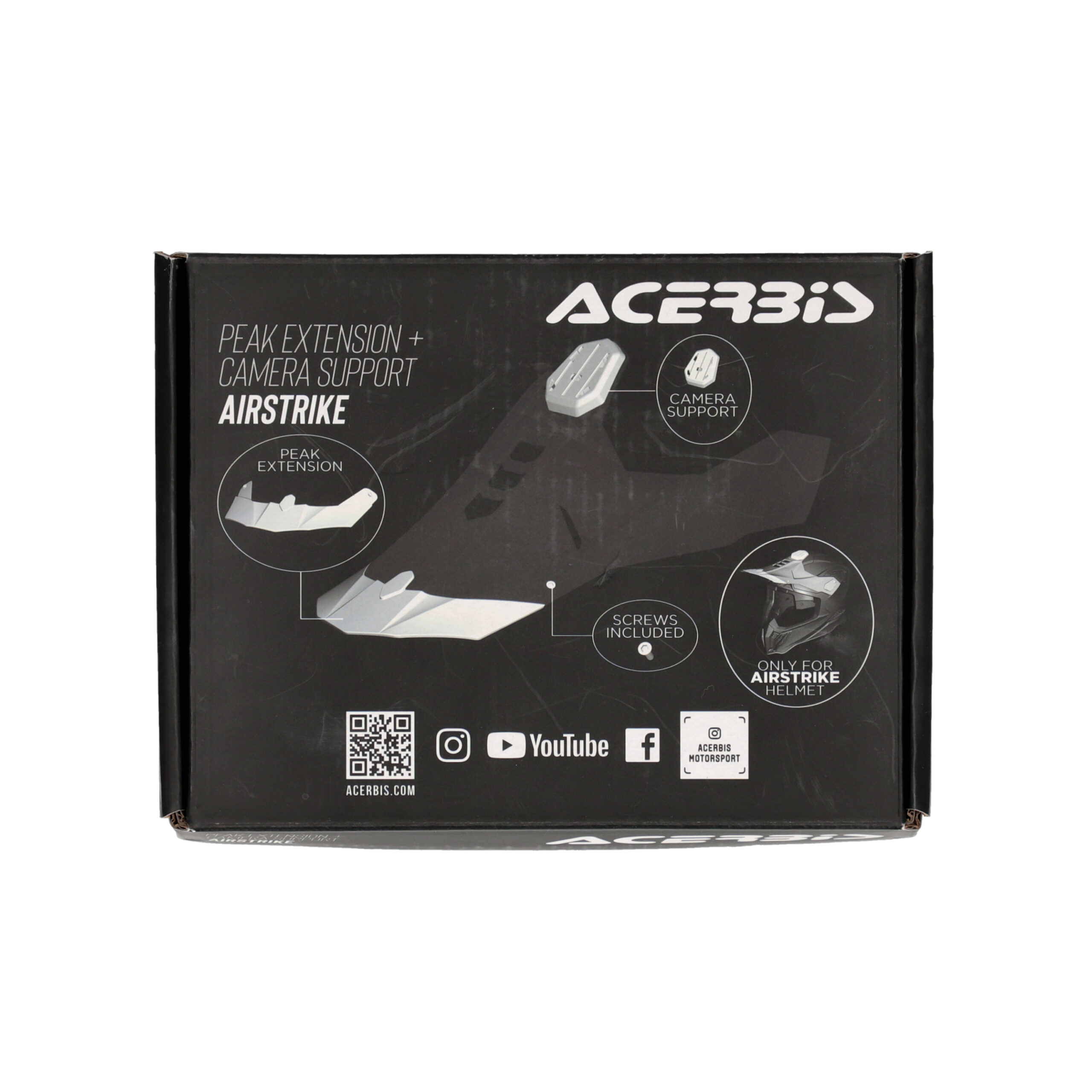 Acerbis delivers an impressive helmet not only in performance but also in features: the Airstrike-C comes with a camera mount, an extended peak for extra protection from the sun, water, and mud, and a spare screw kit.